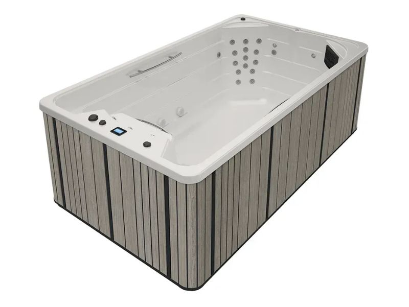 Zanurz się w oazie odnowy biologicznej dzięki Compact Pool marki Aquavia Spa. Ten basen o wymiarach 400 x 230 cm oferuje wyjątkowy hydromasaż i pływanie w przeciwprądzie. Wszechstronna konstrukcja spodoba się całej rodzinie: najmłodsi mogą bawić się w minibasenie, podczas gdy dorośli mają do dyspozycji duży obszar do ćwiczeń z 16 pionowymi punktami masażu. Ćwicz aquafitness lub zrelaksuj się w bocznej kolumnie masującej, korzystając z chromoterapii z systemem Colour Sense Aquavia Spa. Ponadto dzięki pakietowi Fitness możesz zintensyfikować swój trening dzięki akcesoriom, takim jak drążek z uprzężą do pływania i elastyczne taśmy do ćwiczeń aquagym. Ciesz się krystalicznie czystą wodą dzięki systemowi filtracji i dezynfekcji światłem ultrafioletowym i ozonem, a wszystko to w atmosferze całkowitego komfortu i spokoju. Odkryj przyjemność odnowy biologicznej we własnym domu dzięki kompaktowemu basenowi Aquavia Spa .