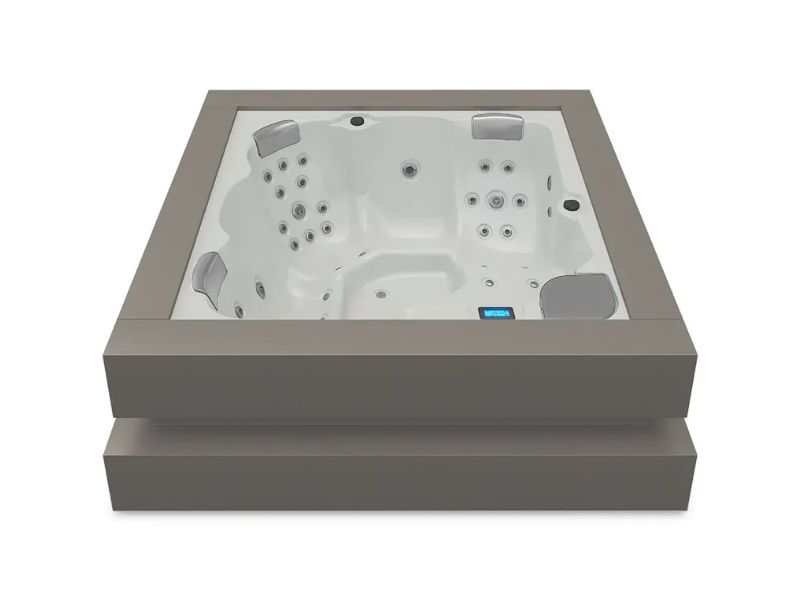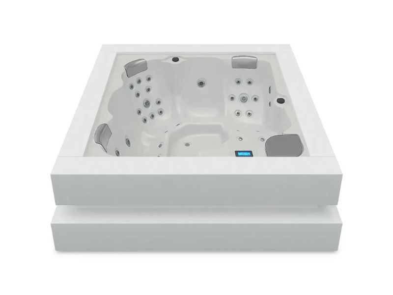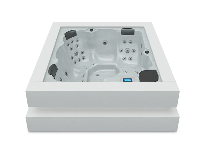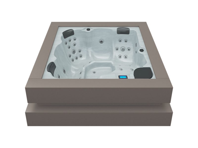 Odkryj wannę spa Cube Ergo marki Aquavia Spa, ergonomiczny klejnot, który na nowo definiuje pojęcie luksusu. Dzięki ekskluzywnemu wzornictwu i niezrównanej ergonomii, ta ogrodowa wanna spa oferuje idealną równowagę między wysoką wydajnością a niezrównanym komfortem. Z miejscami dla 5 osób, w tym dwoma leżankami i trzema siedziskami, wyposażona w 28 dysz wodnych i 14 dysz gorącego powietrza, zapewnia kompletny hydromasaż, który wykracza poza funkcjonalność. Cube Ergo wyposażony jest w innowacyjny system oświetlenia LED (Colour Sense) i oświetlenie obwodowy (Pure Line Lighting). Niezrównana chromoterapia przekształca każdą sesję w wyjątkowe doświadczenie sensoryczne. Elastyczność w wyborze kolorystyki pozwala na idealną integrację z każdym otoczeniem, zarówno wewnątrz, jak i na zewnątrz. Zaawansowany system dezynfekcji oparty na lampie ultrafioletowej (Ultaviolet Treatment) zapewnia wydajną i przyjazną dla środowiska pielęgnację wody spa i zmniejsza zużycie produktów do dezynfekcji o 80%. Ciesz się elegancją i komfortem, które może zaoferować tylko Aquavia Spa.