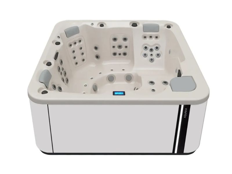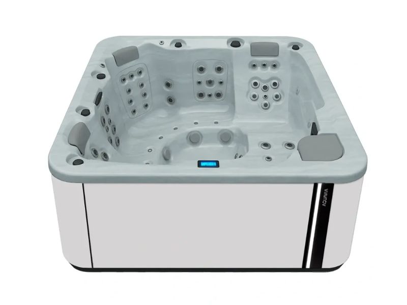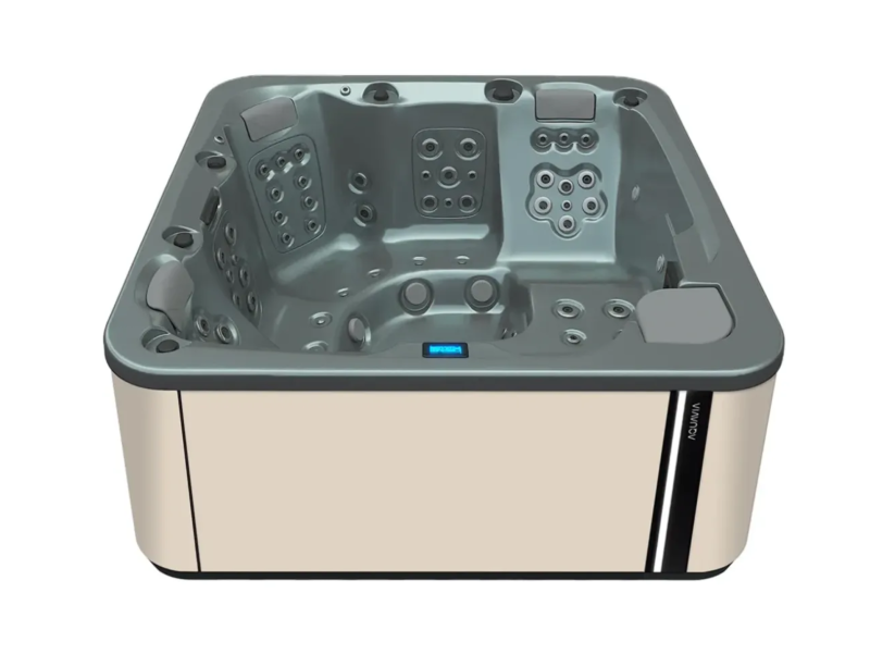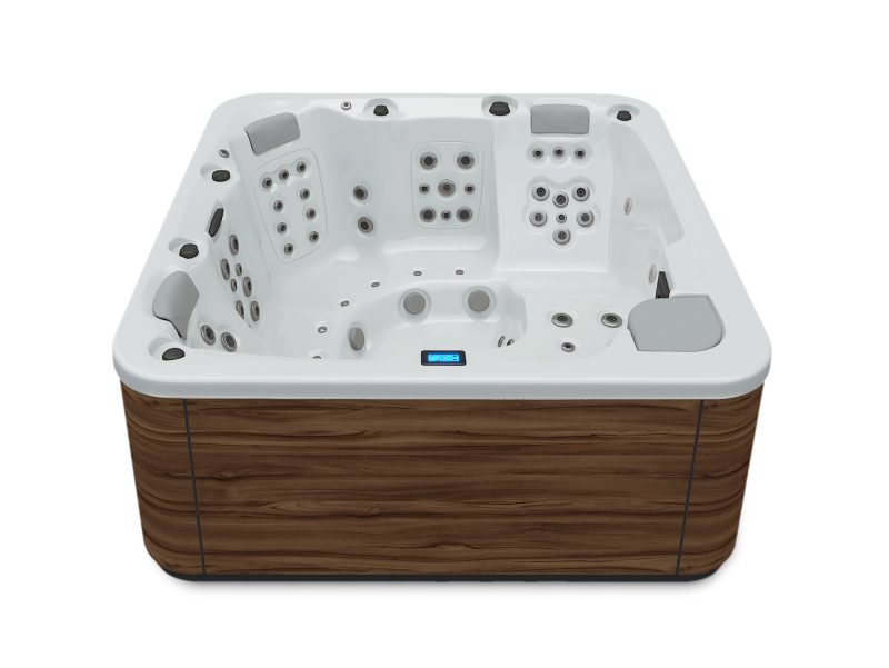 Wanna Aquavia spa Essence zamieni Twój dom lub ogród w oazę dobrego samopoczucia. Dzięki idealnym wymiarom 216 x 216, jest idealna do instalacji jako spa zewnętrzne lub wewnętrzne, umożliwiając zakup idealnego urządzenia, aby cieszyć się niezrównanym domowym spa. Dzięki 2 leżankom w kształcie litery L i 3 strategicznie rozmieszczonym siedziskom, Essence zapewnia relaksujący hydromasaż dla maksymalnie 5-ciu osób. Jego 65 dysz i 10 spersonalizowanych dysz powietrznych gwarantuje kompletny i zróżnicowany masaż, a jego wysokiej jakości konstrukcja, taka jak wykończenie Woodermax i metalowa konstrukcja antykorozyjna, zapewniają trwałość i elegancję. Wyposażona w 75 punktów masażu, oświetlenie LED do chromoterapii i opcjonalne funkcje, takie jak Surround Audio Bluetooth i Wifi Touch Panel, to spa na nowo definiuje komfort w domu. Dostępne do zakupu jako dodatek do tarasu lub ogrodu, wolnostojące lub do zabudowy, Essence jest idealnym wyborem jako wanna z hydromasażem, oferując najwyższy komfort i wygodę podczas każdej sesji spa. Przekształć swoją przestrzeń dzięki Essence by Aquavia Spa i ciesz się prawdziwą przyjemnością hydromasażu.