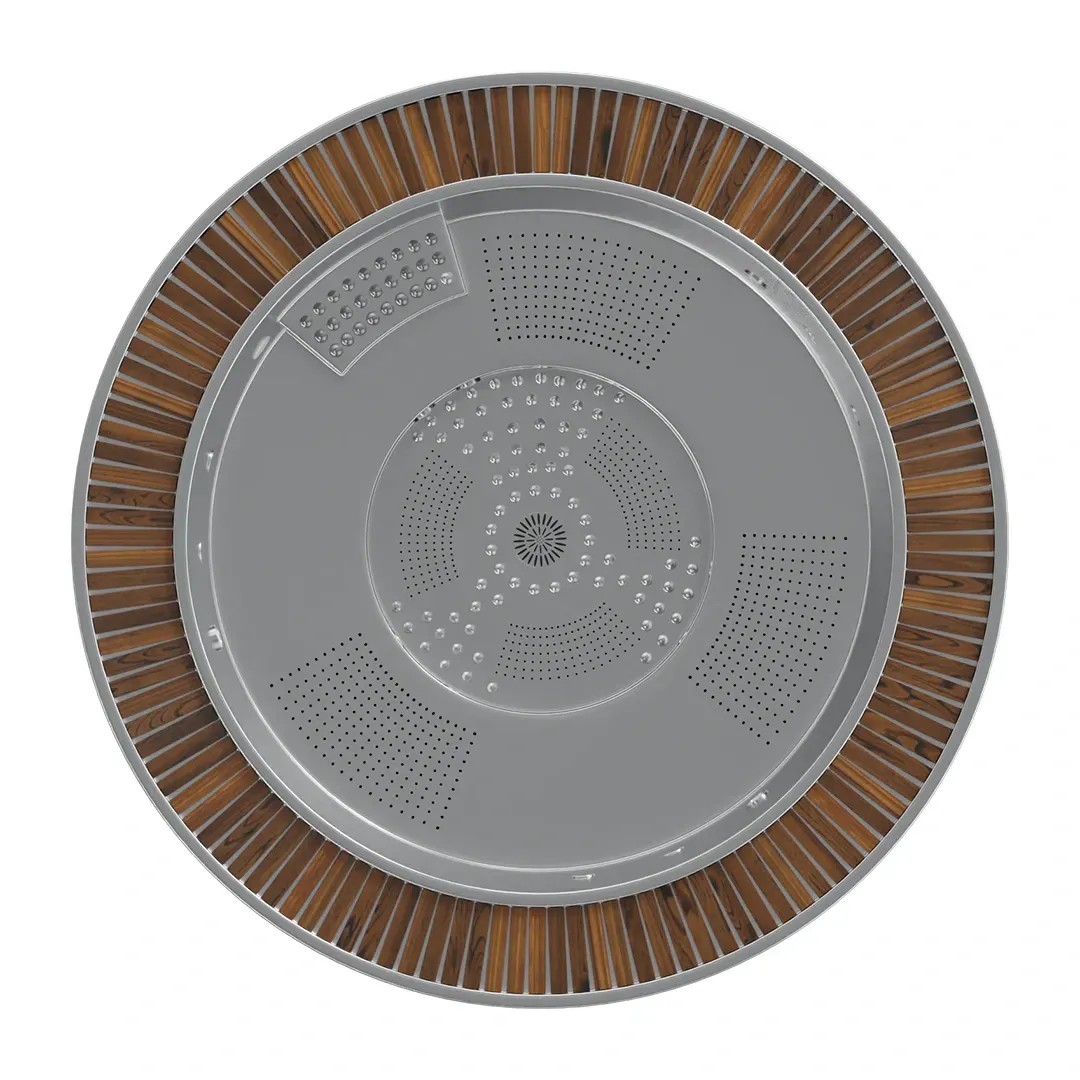 Wanna z hydromasażem Orbion ze stali nierdzewnej wyróżnia się okrągłym kształtem o średnicy 2,30 m oraz wyjątkową jakością materiałów. Ta ekskluzywna wanna ze stali nierdzewnej zapewnia niepowtarzalne doznania relaksacyjne dzięki 6 programom masażu, 12 dyszom hydromasażu i 18 dyszom powietrznym, które tworzą otaczające uczucie bąbelków.
