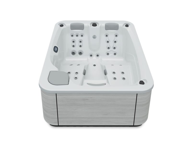 Spa Touch marki Aquavia Spa to idealne rozwiązanie dla par, które chcą zabrać relaks do domu. Idealne spa dla maksymalnie 3 osób, które oferuje dwie wygodne leżanki i siedzisko, idealne na intymne chwile hydroterapii. Dzięki 42 strategicznie rozmieszczonym dyszom i trzem programom masażu zapewnia kompleksową pielęgnację każdej części ciała. To kompaktowe spa jest idealne dla tych, którzy chcą kupić wannę z hydromasażem bez poświęcania miejsca. W rodzinie Aqualife, Touch oferuje wyjątkowe funkcje, takie jak system Clean Water, który utrzymuje krystalicznie czystą wodę dzięki wtryskowi ozonu, oraz Silent Pump, który zapewnia cichą pracę. Dzięki regulowanemu reflektorowi LED do chromoterapii i opcji Bluetooth Audio, tworzy idealną atmosferę do relaksu. Ponadto izolacja termiczna EcoSpa zmniejsza zużycie energii nawet o 69%. Spa Touch maksymalizuje przestrzeń i komfort, jest bezkonkurencyjnym spa dla par poszukujących niezrównanych doznań spa.