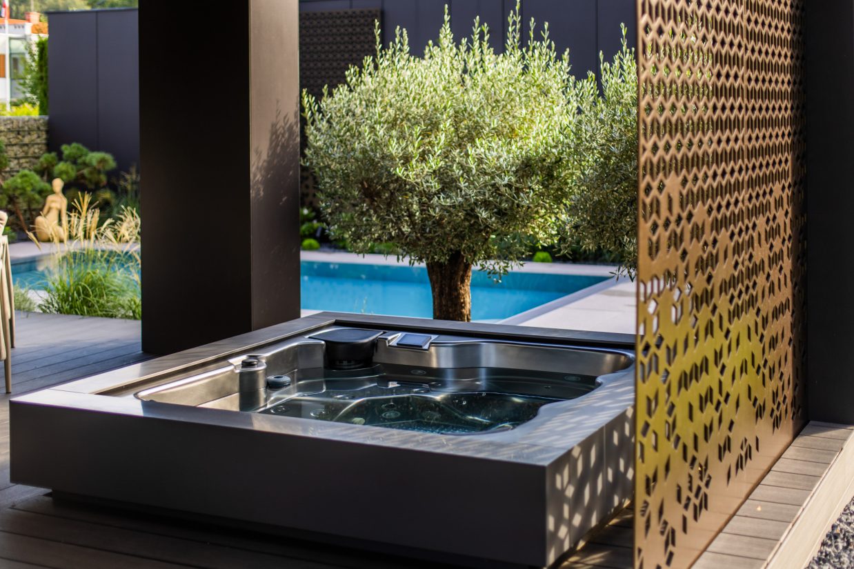 Realizacja zewnętrznej strefy SPA: Cube Ergo częściowo wpuszczone w taras